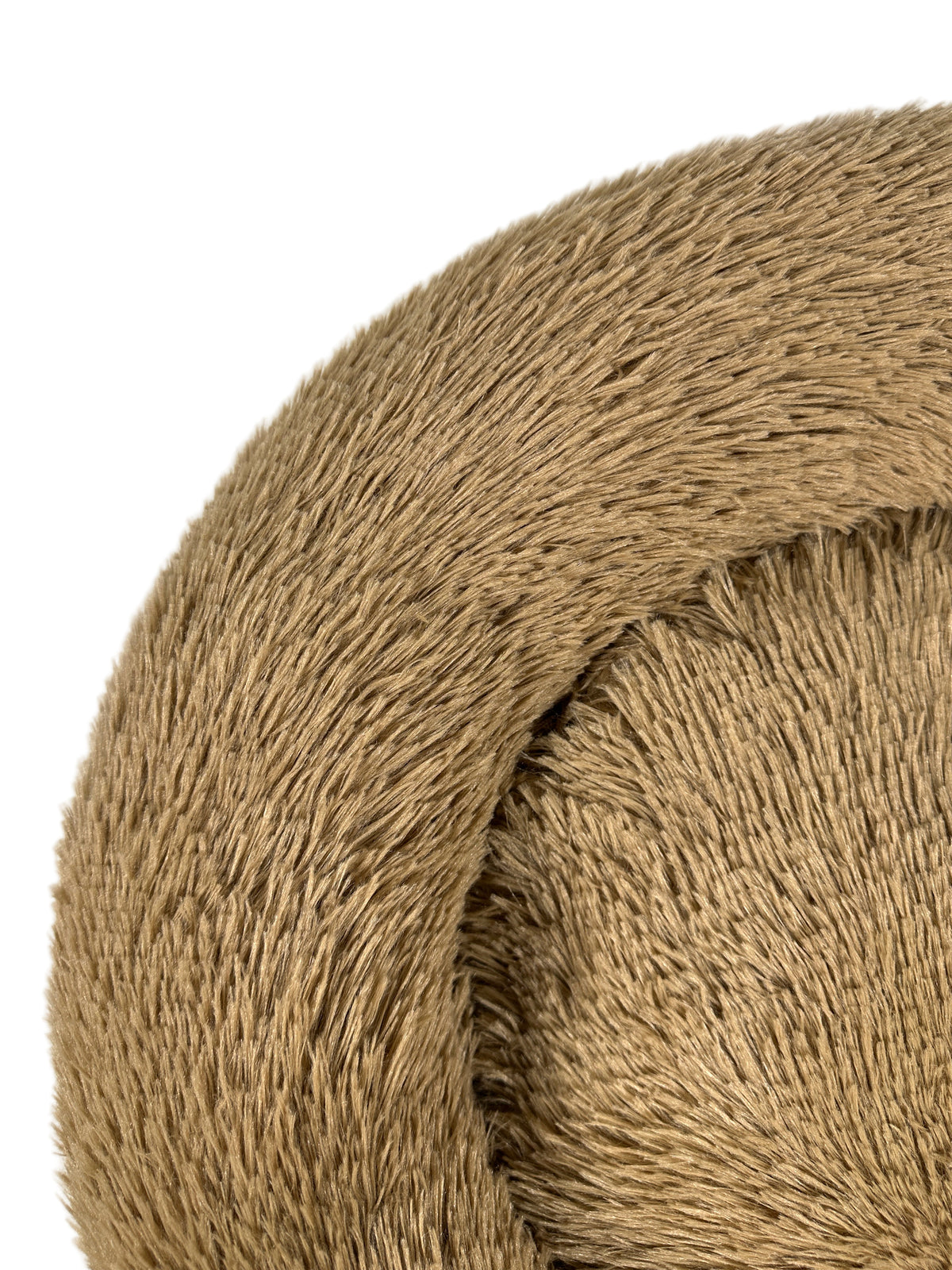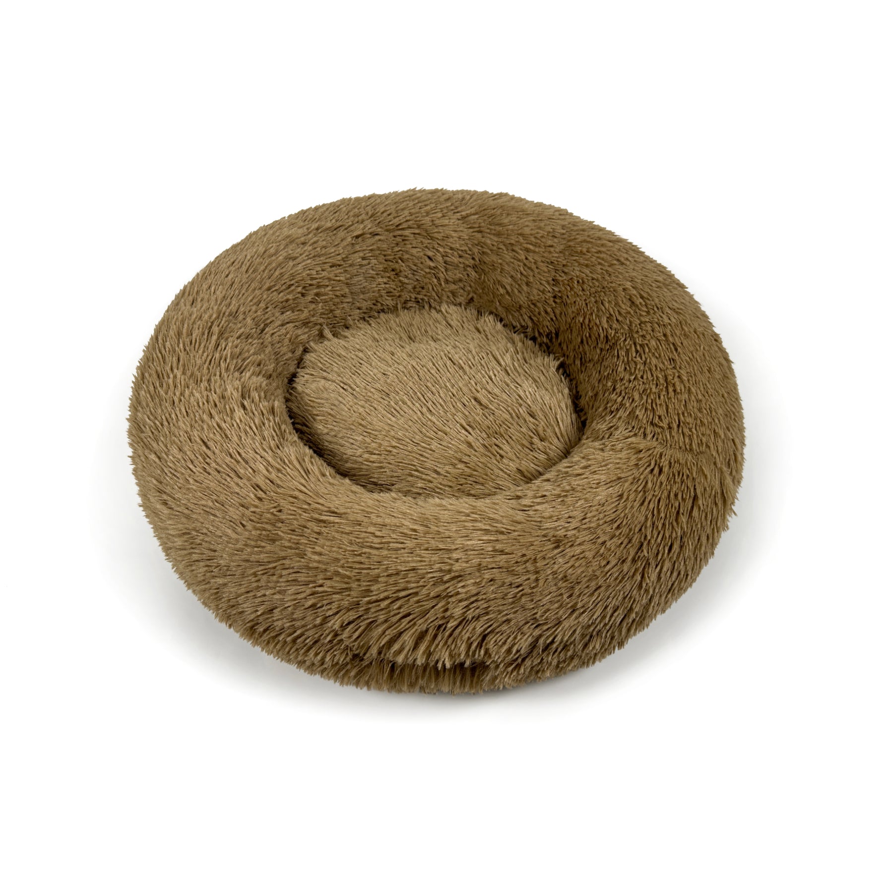 מיטה לכלבים עגולה בעיצוב דונאט, עשויה מבד פרוותי רך במיוחד לנוחות ופינוק מקסימלי.