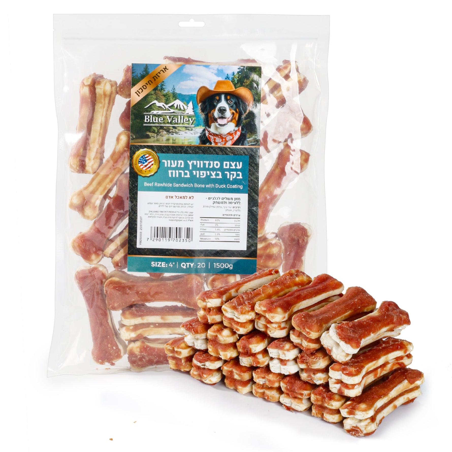 חטיף כלבים בלו וואלי עצם סנדוויץ' עור בקר בציפוי ברווז 1500 גרם