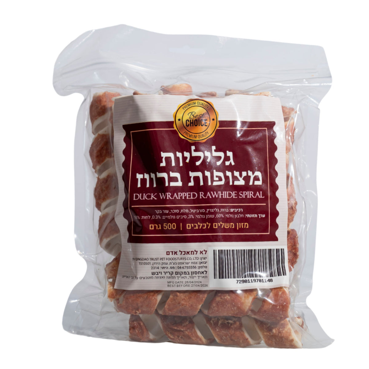 חטיף כלבים בסט צ'וייס גליליות ספירלה מצופות ברווז 500 גרם